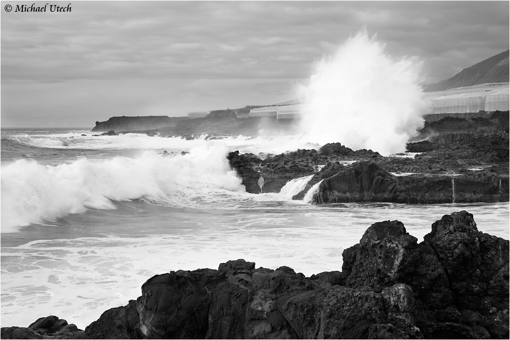 Die größeren Brecher schafften auch problemlos mal 30 Meter hohe Fontänen beim Aufprall.