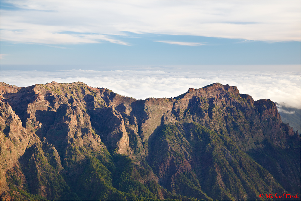 Blick zu einem niedrigeren Teil des Kraterrandes.
