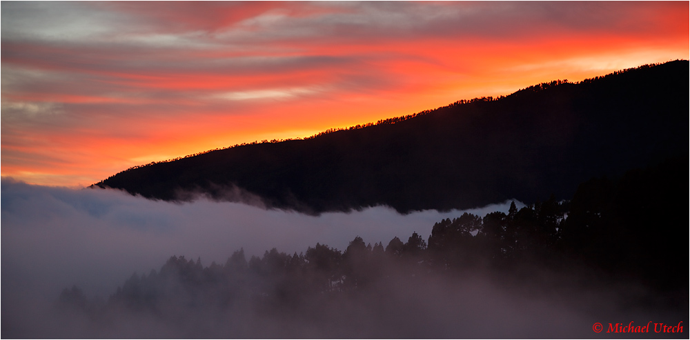 Auf der elendig langen Rückfahrt (von 2400m auf 0m und kein Stück länger als 50m geradeaus...) wurden wir noch von einem tollen Himmelsglühen über den Wolken überrascht.