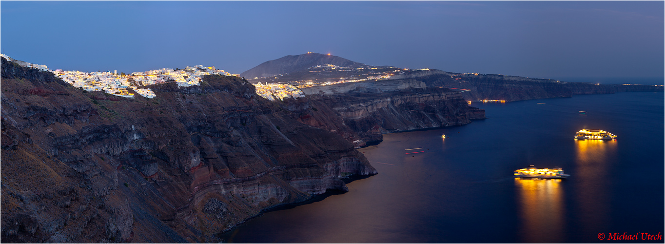 Nachtpanorama mit zwei Kreuzfahrtschiffen im Krater.