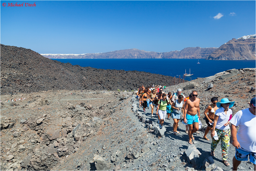 Über eines sollte man sich bei einem Bootsausflug auf Santorin klar sein - überall legen mindestens 5 Schiffe gleichzeitig an und dann sieht es so aus wie hier auf Nea Kameni.