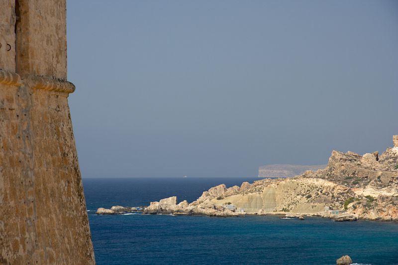 Im Dunst sieht man die beeindruckenden Klippen von Ta'Cenc, Gozo.