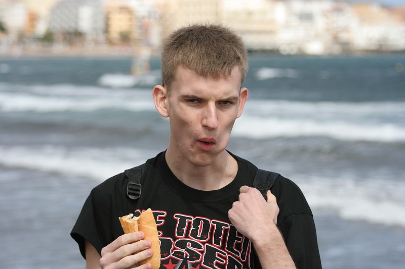 Also wenn ich das Gesicht richtig deute, heißt das "Ey du Arsch, fotografier mich nicht beim Essen!" ;-)