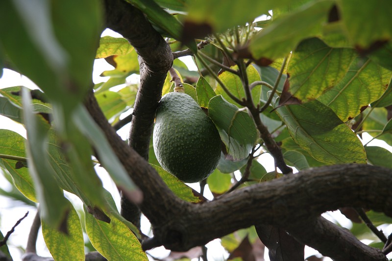 Ein Avocado in der Bananera el Guanche. Manche Früchte, die man in der Natur noch nie gesehen hat, sind hier ganz nett anzusehen.