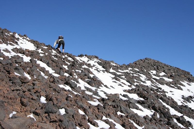 Markus schaut auf allen Vieren über den Rand, der heimtückische Wind machte ein aufrechtes Annähern viel zu gefährlich.