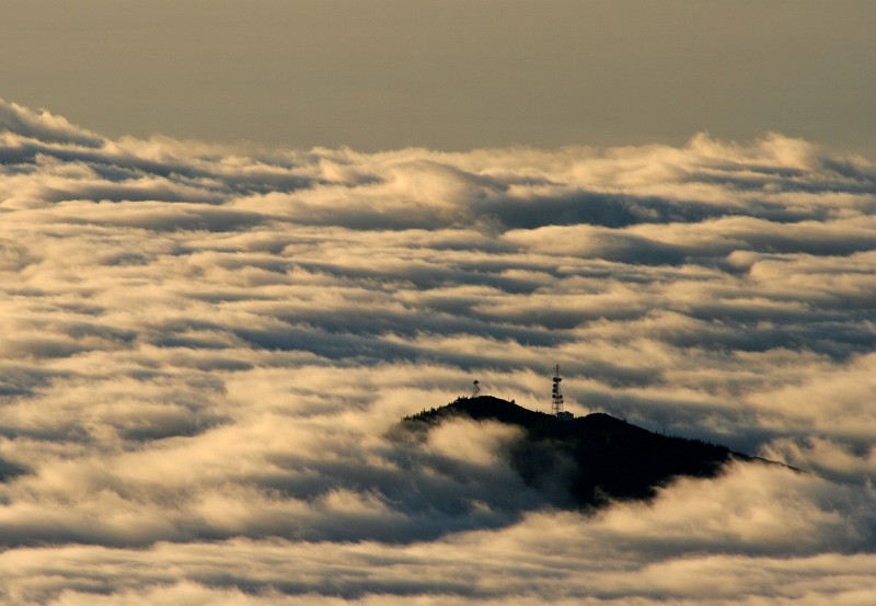 Mit dem Tele aus den Wolken gefischt, dieser Berg schaute gerade so heraus.