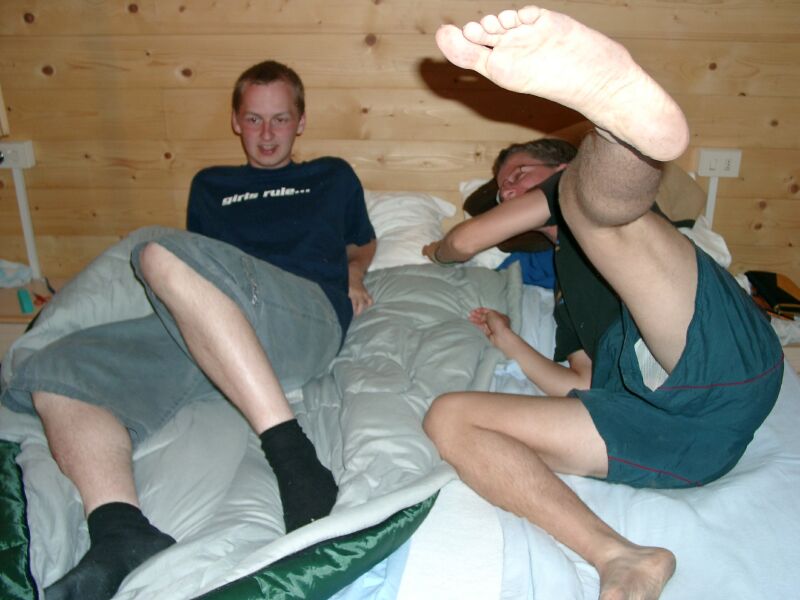 Seifi wollte beweisen, dass das Bett quietscht, was man aber auf dem Foto schwer hört.