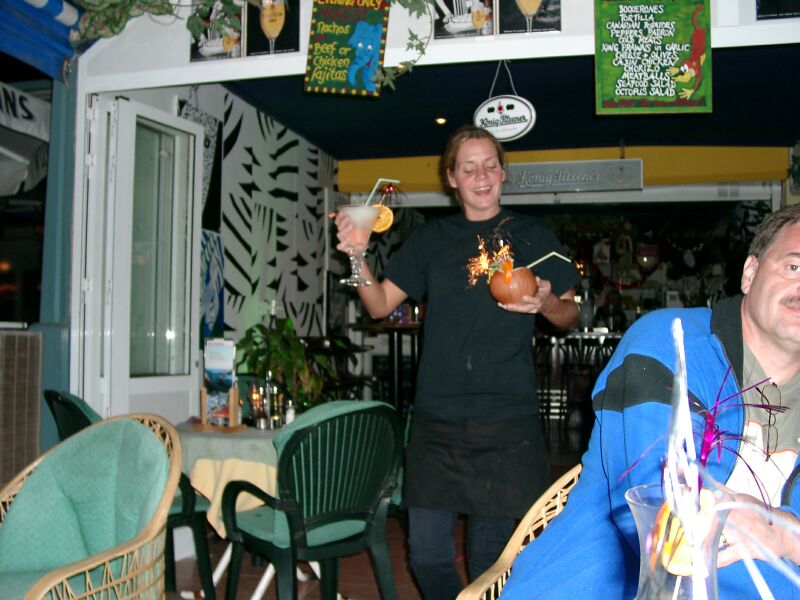 Unsere nette Bedienung, die normalerweise nicht so angeheitert guckt, mit der zweiten Runde.